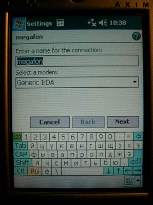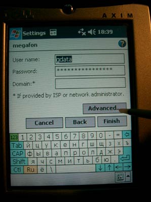 просто отчетик опосля наступания на кучу граблей. =) Сижу под Мегафоном, а GPRS у них сам по себе глюкавенький. По началу все настроил как в справочнике абонента расписано. Потом полночи трахал мозги мегафоновскому суппорту. Ниче не помогло =) Ключевое слово: мобила выдает при попытке установить gprs-соединение фразу "На GPRS нужна подписка". Ессно, у меня все подписано. Тариф - помегабайтный. Прошивка мобилы ХЗ какая, года полтора назад покупал и ничего не трогал в ней. КПК - win2003 (прошивка A05). Берется статья по настройке с http://servicedad.boom.ru/ прямой адрес http://servicedad.boom.ru/GPRS/PDA_WinCE_GPRS_settings_rus.doc, вдумчиво читается. Ключевое слово: +CGDCONT=1,"IP","internet.msk" без AT Ставить полномасштабные эксперименты с настройками некогда, равно как и писать их человеческим языком, поэтому выложил кучку скриншотов с работающими настройками: